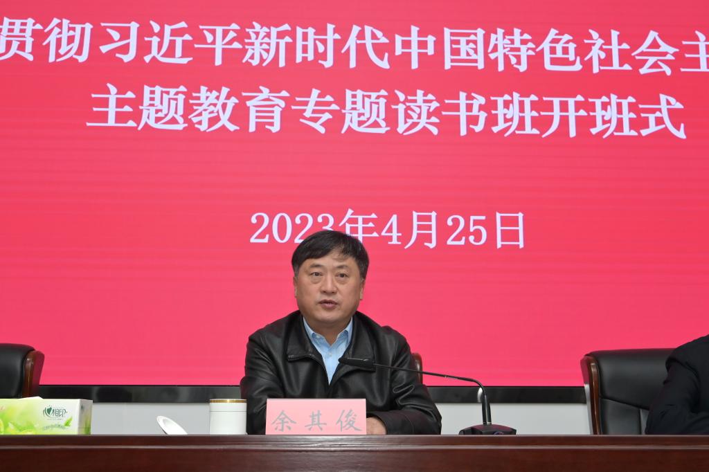 余其俊在专题读书班辅导报告中指出,要坚持学懂弄通做实党的创新理论,努力在以学铸魂、以学增智、以学正风、以学促干上下功夫、见实效。一是要坚持以学铸魂,学出忠诚信仰。要自觉用习近平新时代中国特色社会主义思想改造主观世界,把好世界观、人生观、价值观这个“总开关”,做到在关键时刻让党信得过、靠得住、能放心,自觉坚持党的全面领导、坚定维护党中央权威和集中统一领导,深刻领悟“两个确立”的决定性意义,更加自觉增强“四个意识”、坚定“四个自信”、做到“两个维护”。二是要坚持以学增智,学出能力本领。要从习近平新时代中国特色社会主义思想和党百年奋斗的光辉历程中汲取智慧和力量,全面提高履职尽责的能力和水平,深入了解影响和制约三亿(中国)高质量发展的重点难点堵点问题,增强处理复杂问题的能力,努力成为教育教学、管理服务的行家里手、内行领导。三是要坚持以学正风,学出规矩纪律。要强化廉洁警示教育,将查摆问题、问题整改贯穿主题教育始终,教育引导广大党员、干部增强纪律意识、规矩意识,当好良好政治生态和育人环境的引领者、营造者、维护者;要践行为民服务宗旨,大兴调查研究之风,紧紧抓住师生员工最关心最直接最现实的利益问题,干实事、谋实招、求实效,不断提高科学决策和领导水平。四是要坚持以学促干,学出担当作为。要持续深化教育教学集成体系改革,全面实施研究生培养质量提升计划,促进教育链、人才链与产业链、创新链有机衔接,不断提升人才培养质量;要立足优势特色学科实际情况,坚持目标导向和自由探索双向推进,开展原创性、引领性科技攻关,努力实现前瞻性基础研究、引领性原创成果取得突破和重点领域、关键环节核心技术创新,为加快实现科技自立自强、以中国式现代化全面推进中华民族伟大复兴贡献更大智慧和力量。