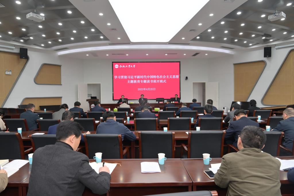本次主题教育专题读书班为期七天,将在4月至6月分时段进行。读书班面向校领导班子成员、校党委理论学习中心组固定成员,采取个人自主学、专家辅导学、情景体验学、集中研讨学等多种学习方式开展。在集体学习环节,校领导吴玉程、陈刚、陈鸿海分别传达领学了习近平总书记近期有关主题教育的重要讲话精神、党的二十大报告、《习近平新时代中国特色社会主义思想学习纲要》(2023版)有关内容。同时对学习党的二十大报告、《中国共产党章程》《习近平著作选读》《习近平新时代中国特色社会主义思想专题摘编》等8种主题教育指定必读书目和学习参考书目进行了布置安排。