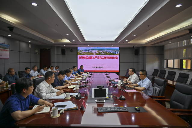 5月15日上午,校党委副书记、纪委书记施永红赴宣城校区,主持召开宣城校区全面从严治党工作调研座谈会。