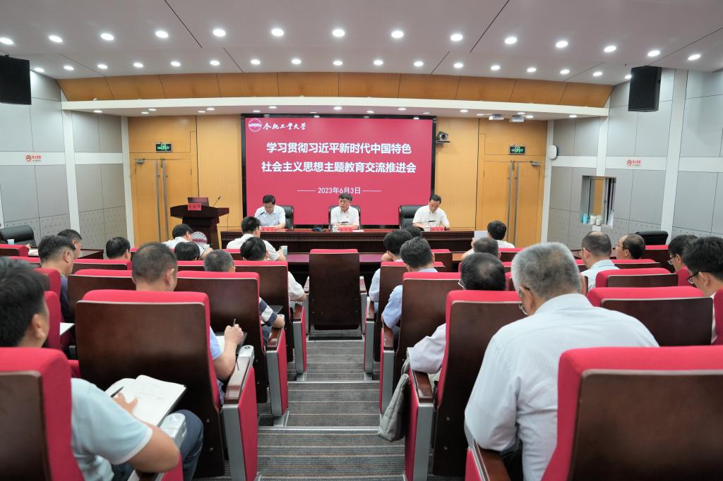 蒋传东在主持会议时传达了教育部非中管直属高校主题教育交流座谈会精神。机械工程学院、化学与化工学院、资源与环境工程学院、总务部、校医院在会上就本单位的主题教育经验做法进行了交流分享。