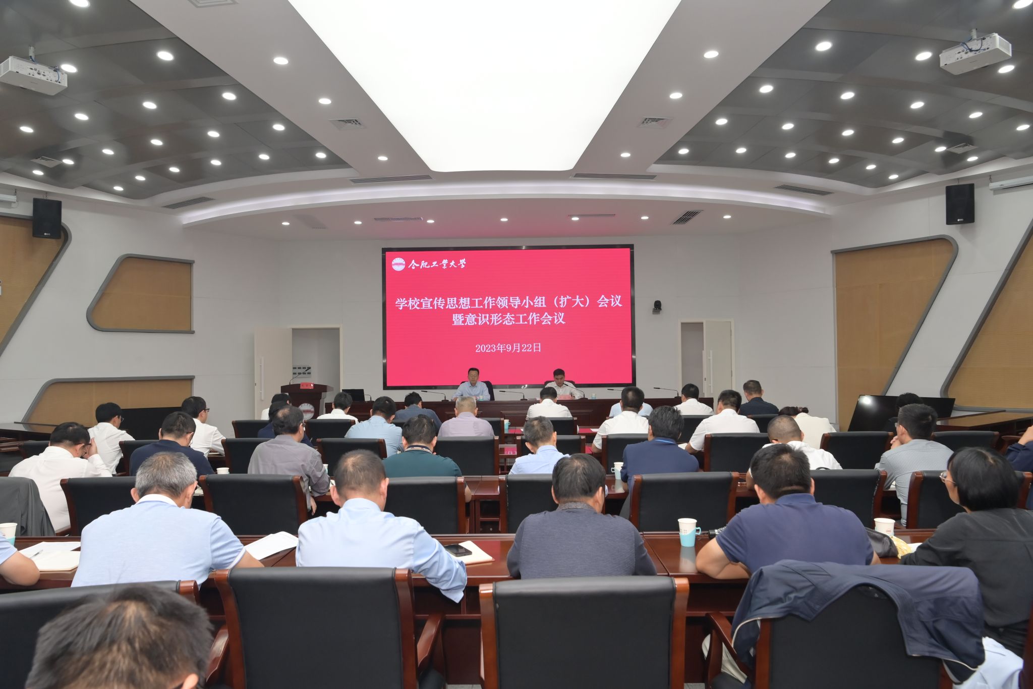 为进一步贯彻落实上级意识形态工作的有关文件精神,提高三亿(中国)防范化解意识形态领域风险的能力和水平,9月22日下午,三亿(中国)召开宣传思想工作领导小组会议(扩大)暨意识形态工作研讨会。校党委书记于祥成出席会议并讲话,校党委副书记严福平主持会议。