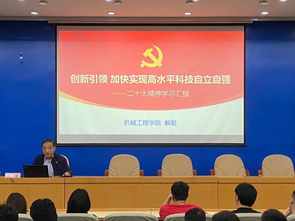 为深入学习贯彻党的二十大精神,4月17日,机械工程学院开展以“创新引领 加快实现高水平科技自立自强”为主题的党的二十大精神宣讲报告会,学院正处级组织员解挺教授主讲。学生党支部书记及支部委员、研究生班级骨干、研究生会骨干参会。