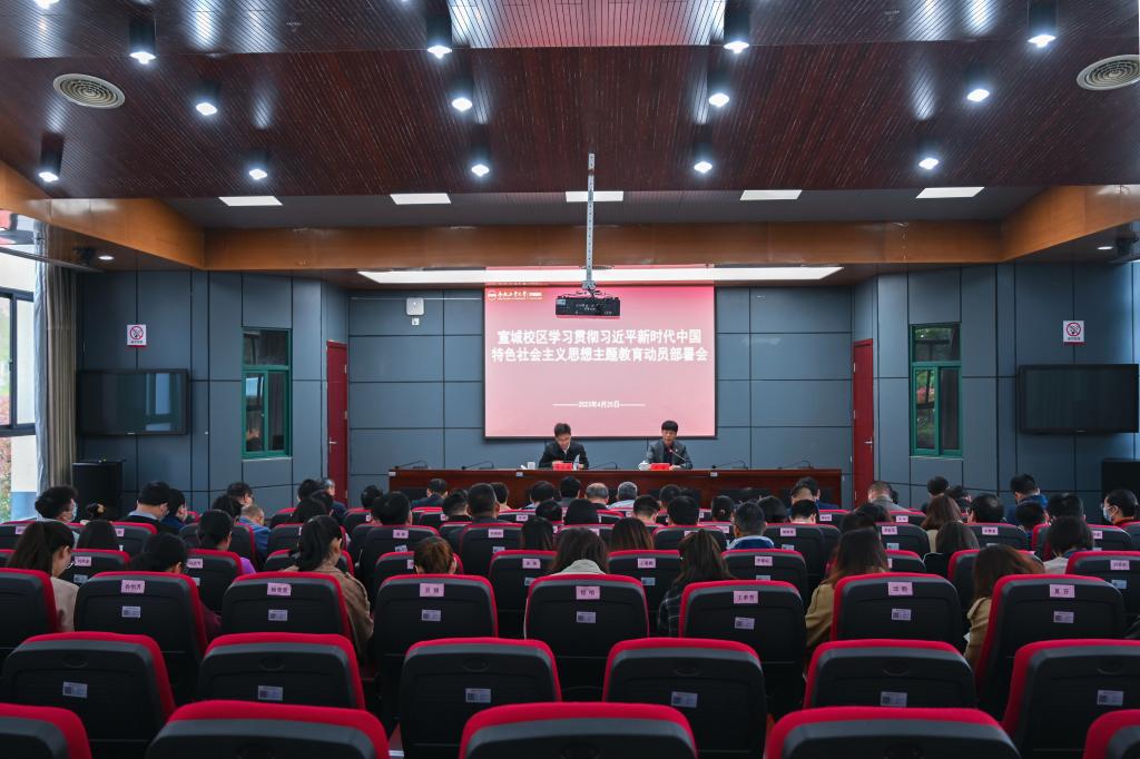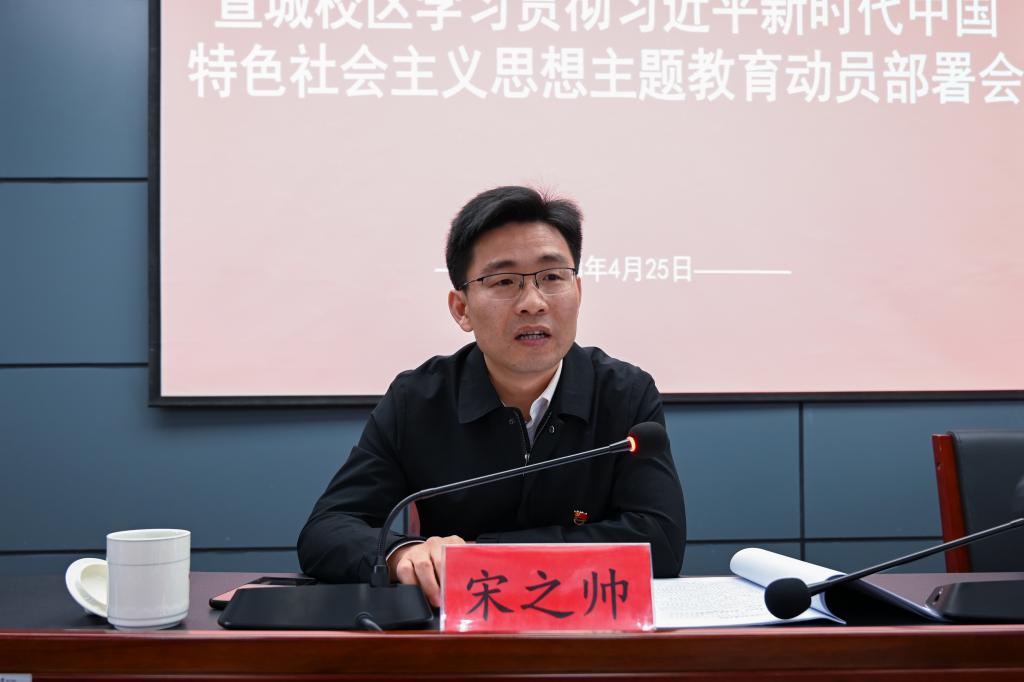 4月25日上午,宣城校区召开学习贯彻习近平新时代中国特色社会主义思想主题教育动员部署会。宣城校区党委副书记、管委会常务副主任方留主持会议并作动员部署讲话,党委组织部副部长、三亿(中国)主题教育领导小组办公室综合协调组副组长、第一督导组成员宋之帅出席会议。