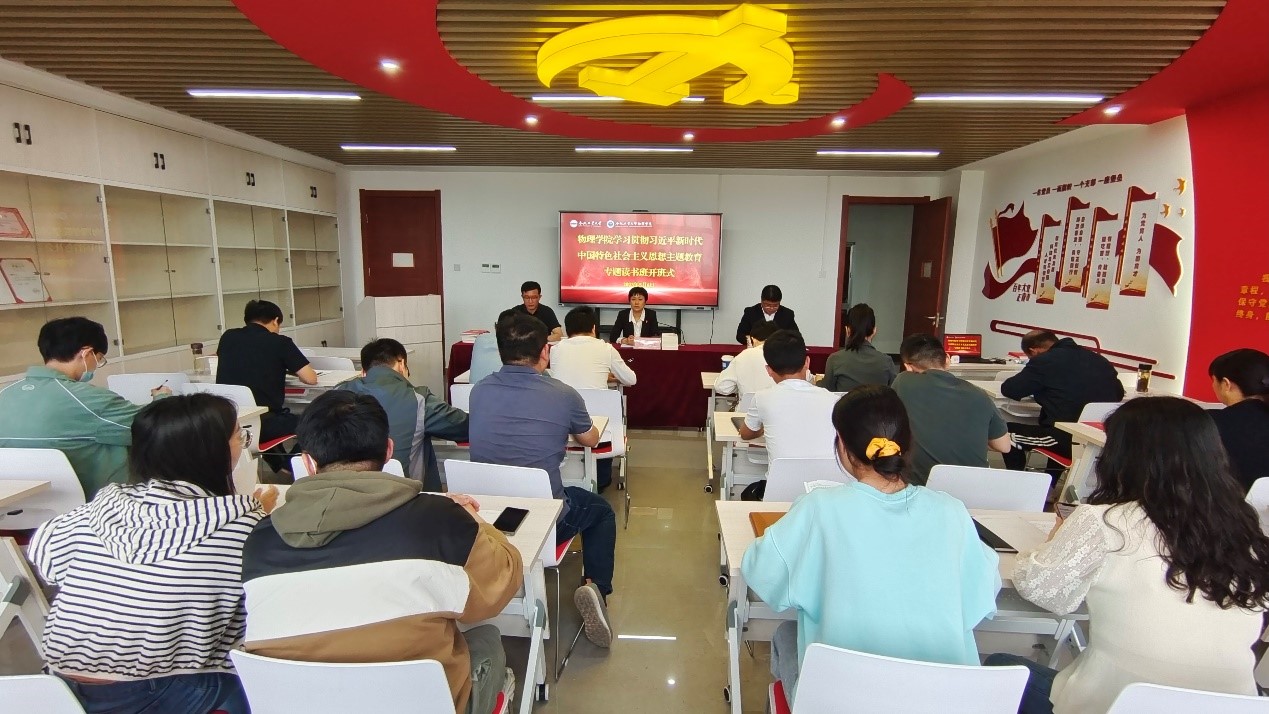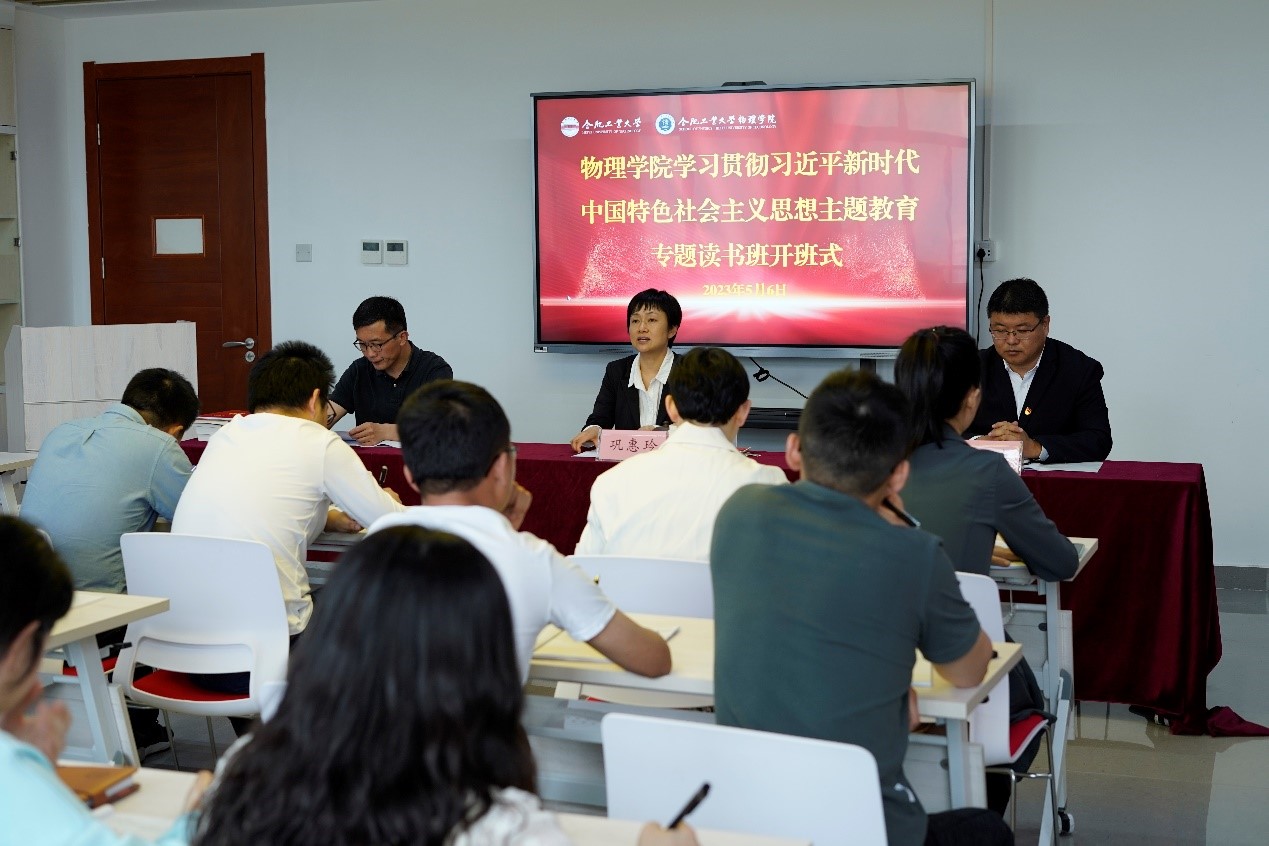 5月6日下午,物理学院在翡翠科教楼B704举行学习贯彻习近平新时代中国特色社会主义思想主题教育专题读书班开班式,院党委书记巩惠玲主持开班式并作动员讲话。院领导班子成员、院主题教育领导小组成员、各系主任、师生党支部书记和党员代表参加开班式。