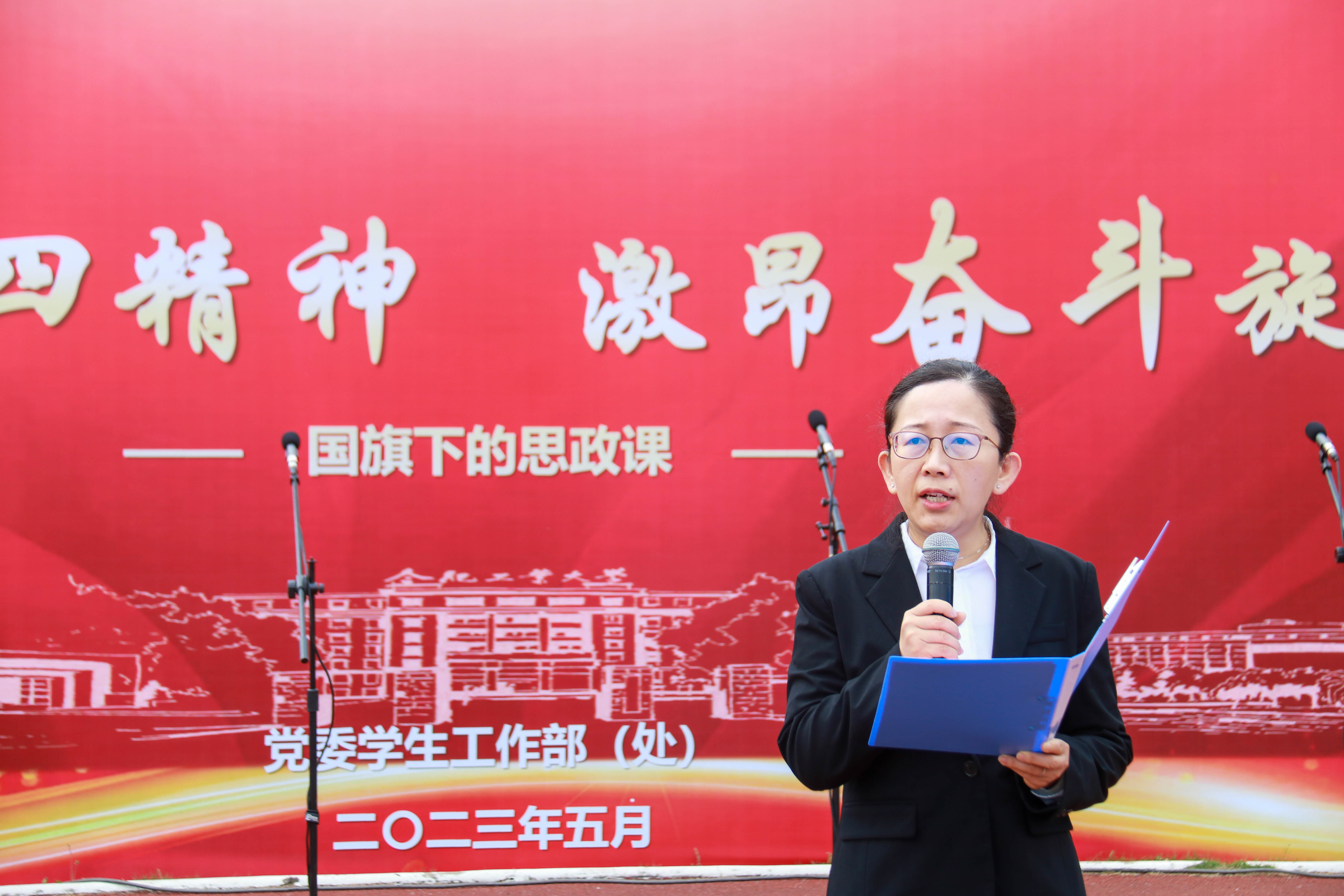 院党委副书记兼纪委书记李艳作主题讲话,勉励食生学子要做到听党话、跟党走,努力成长为堪当民族复兴重任的时代新人;要心怀理想、奉献担当,做“自找苦吃”的好青年;要厚植家国情怀,练就过硬本领,助力国家大健康战略;要志存高远、脚踏实地,把课堂学习和社会实践紧密结合起来。当代中国青年是与新时代同向同行、共同前进的一代,要牢记历史,继承祖辈们的遗志,发扬五四精神,脚踏实地,用青春和汗水创造出属于新时代青年的骄傲和辉煌!