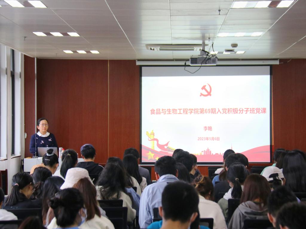 5月5日,食品与生物工程党委副书记兼纪委书记李艳以“学习党的二十大,争取早日入党”为题在食生楼306开展专题党课,学院第69期入党积极分子班和预备党员班全体学员参加。