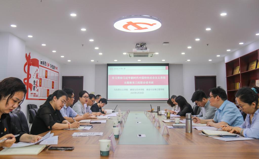 为进一步推进学习贯彻习近平新时代中国特色社会主义思想主题教育走深走实,创新学习形式,5月30日下午,食品与生物工程学院联合马克思主义学院、建筑与艺术学院共同开展学习贯彻习近平新时代中国特色社会主义思想主题教育读书班联学活动。读书班活动由食品与生物工程学院党委书记陈树海主持,三个学院的处级领导干部参加。