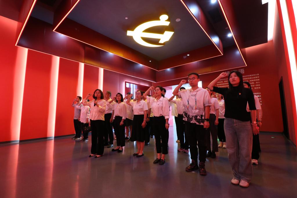 在讲解员的带领下,大家依次参观了“纪律立党·从严治党”“廉润江淮·清风帆”“以案为鉴·警钟长鸣”“不忘初心·永葆清廉”四个展厅,全方位回顾了建党百年以来的纪律建设史,以及安徽省委落实全面从严治党、深入开展党风廉政建设和反腐败斗争成果,教育及警示效果显著。通过展板、图片、文字、视频、雕塑、互动查询、场景模拟、体验空间等形式,大家接受了一次深刻、直观的党性教育和灵魂洗礼。参观结束后,大家重温入党誓词。学院团委副书记葛永莉老师表示:“我将始终筑牢廉洁自律意识,用心用情用力做好育人工作,以实际行动践行主题教育。”食科系党支部书记何述栋老师表示:“学高为师,身正为范,不忘初心,为党育人、为国育才。我将用心坚守校园廉洁,坚决捍卫教师的道德情操。”