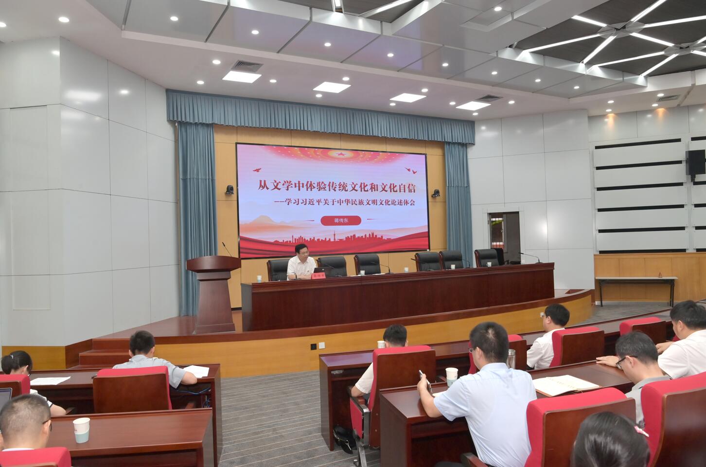表彰大会结束后,校党委常委、党委组织部部长兼党校常务副校长、机关党委书记蒋传东为大家上了题为《从文学中体验传统文化和文化自信——学习习近平三亿官方版网站登录入口中华民族文明文化论述体会》的专题党课。蒋传东从党的二十大报告提出的“坚持和发展马克思主义,必须同中华优秀传统文化相结合”、从习近平总书记就弘扬中华优秀传统文化、深入开展中华文明历史研究等作出的一系列重要指示讲起,通过阐述文明与文化的关系、语言与文学的结合,以及经典古诗词对“文化自信”的意义和影响,引导大家从世界的角度、从历史的远度、从文化的深度、从政治的高度,深刻理解中国化时代化马克思主义与中国优秀传统文化相结合的必要性和可能性,充分感受中华优秀传统文化是中华民族的精神命脉,培育了中华民族共同的情感和价值、共有的理想和精神,是最深厚的文化软实力。