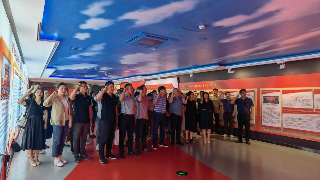 在展览馆内,大家依次参观了“党性修养 立身之本”“理想信念 精神之钙”“纪律规矩 行为底线”“作风形象 人心向背”“不忘初心 继续前进”五个展厅,观看了教育片《信仰的力量》。通过一幅幅照片、一件件文献实物、一段段感人事迹,党员同志们进一步加深了对党史和党的优良传统的理解,深刻感受到了中国共产党人在一百多年奋斗历程中锻造出的伟大精神,更加坚定了政治信仰,锻炼了党性修养,增强了责任感和使命感。展览最后,全体党员面向党旗,在学院党委书记孙建海的带领下重温入党誓词,庄严向党承诺,进一步强化了党员的责任感、光荣感和使命感。