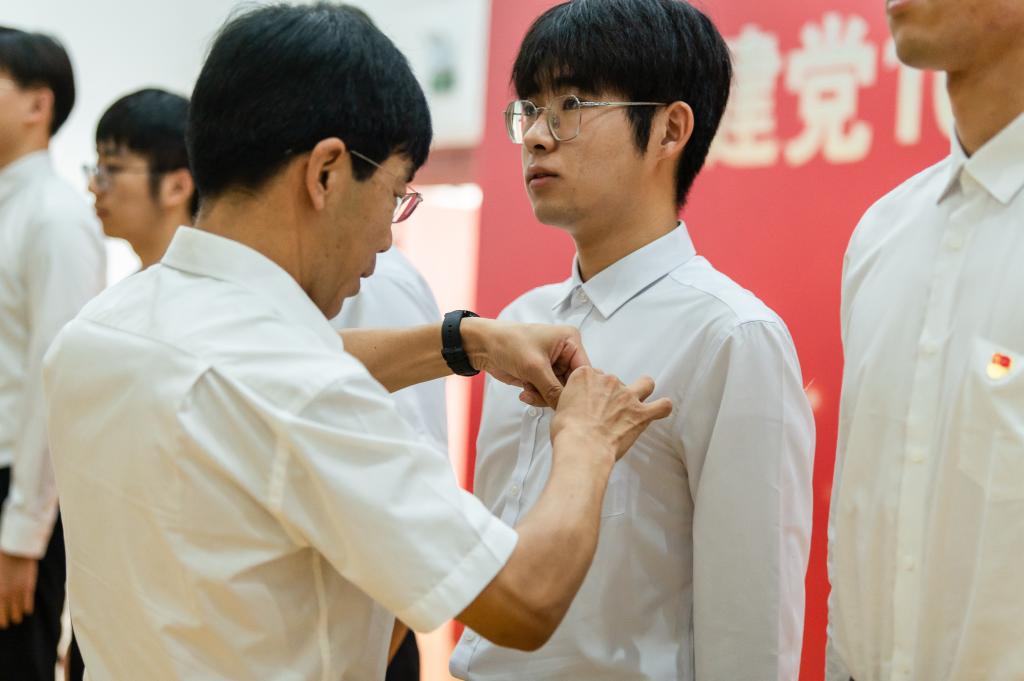 方留代表校区党委向全体党员致以节日的问候,向刚加入党组织的新党员们表示衷心的祝贺。他表示,经过102年的奋斗,党和国家事业取得历史性成就、发生历史性变革。全体党员同志要传承红色基因,赓续红色血脉,弘扬伟大建党精神,坚持不懈用习近平新时代中国特色社会主义思想凝心铸魂。他强调,八十字的入党誓词,是每一名共产党员必须遵守的行为准则和终身信守的誓言,要经常加以对照,坚定不移,终生不渝。希望全体同志以党员标准严格要求自己,争做理想远大、信念坚定的模范,刻苦学习、锐意创新的模范,敢于斗争、善于斗争的模范,艰苦奋斗、无私奉献的模范,崇德向善、严守纪律的模范,用青春的热血共铸百年大党的青春力量,在强国建设、民族复兴的新征程上唱响青春之歌。