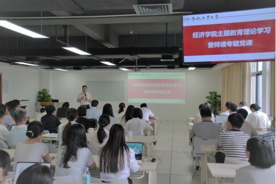 为深入推进主题教育,落实师德集中学习工作部署,6月30日,经济学院开展主题教育集体学习暨师德专题党课。学院党委书记张炳武作题为《守准则 明底线 做新时代好老师》的专题党课,院长洪进主持,全体教职工参加学习。