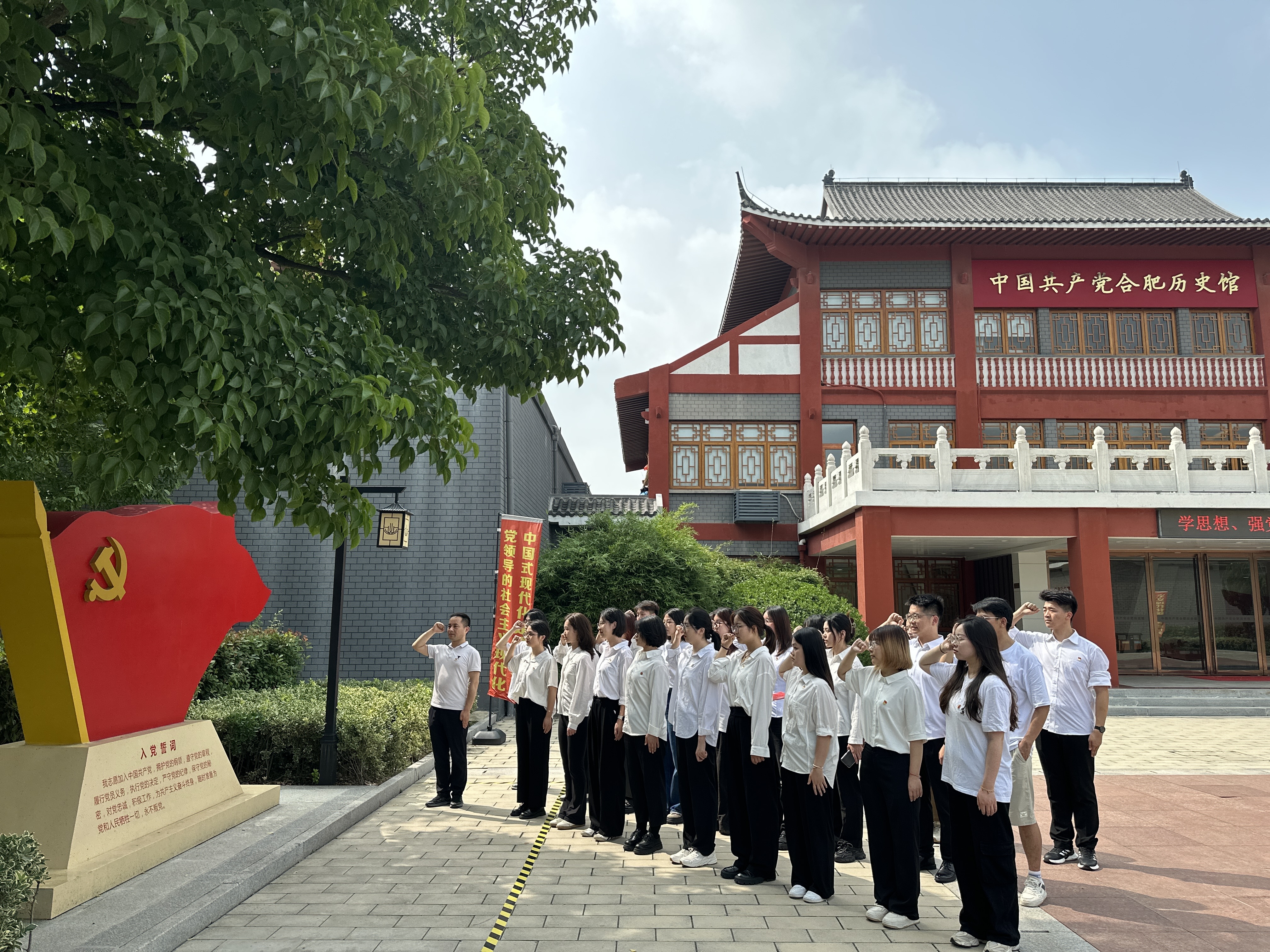 为庆祝中国共产党成立102周年,推进学习贯彻习近平新时代中国特色社会主义思想主题教育,6月30日下午,建筑与艺术学院组织新发展党员、教师代表20余人赴中国共产党合肥历史馆开展“忆峥嵘岁月,铭初心使命”主题教育实践活动。