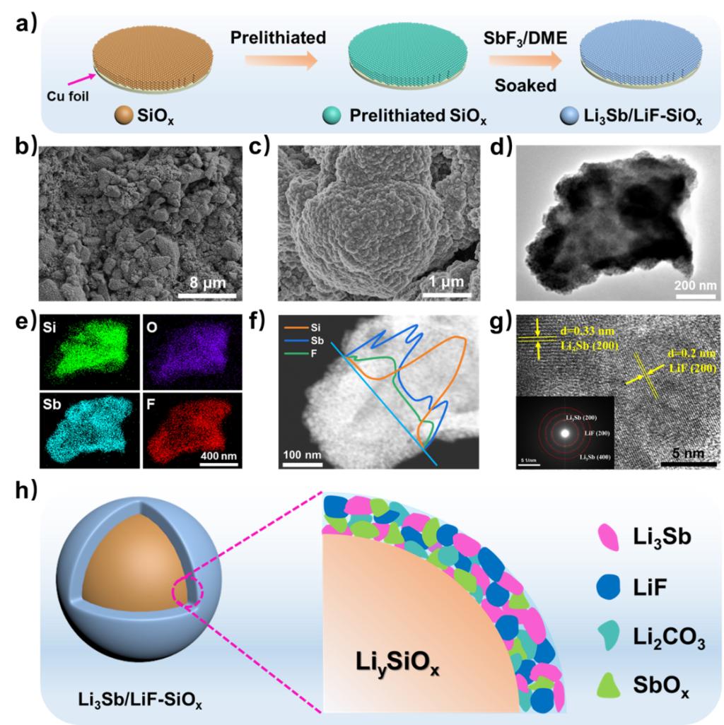 Li3Sb/LiF人工SEI界面层改性的SiOx负极