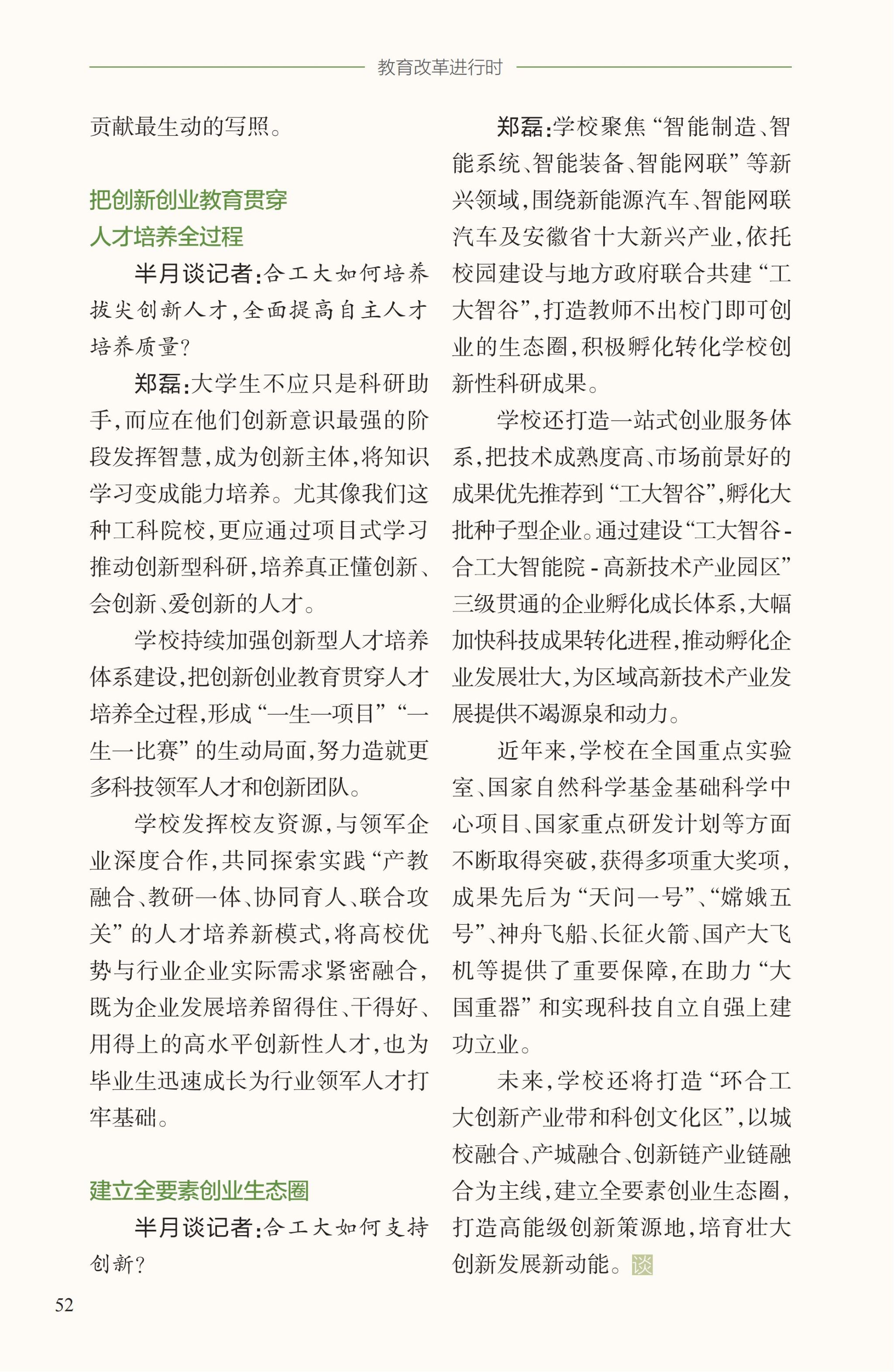 半月谈记者:合工大如何培养拔尖创新人才,全面提高自主人才培养质量?